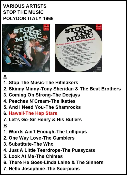 STOP THE MUSIC POLYDOR LPE HM 736016 ITALIEN 1966