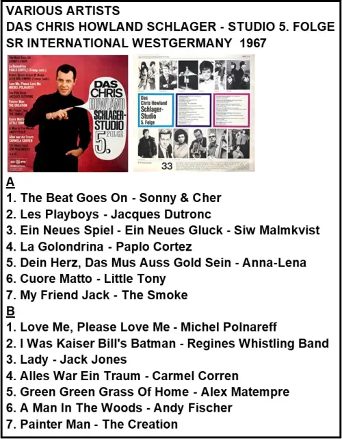 DAS CHRIS HOWLAND SCHLAGER - STUDIO 5 SR INTERNATIONAL 76087 9 13 VÄSTTYSKLAND 1967