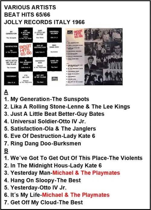 BEAT HITS 65/66 JOLLY HI-FI RECORDS LPJ 5056 ITALIEN 1966
