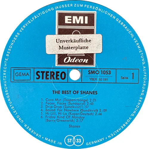 THE BEST OF SHANES ODEON SMO 1053 PROMO VÄSTTYSKLAND 1969