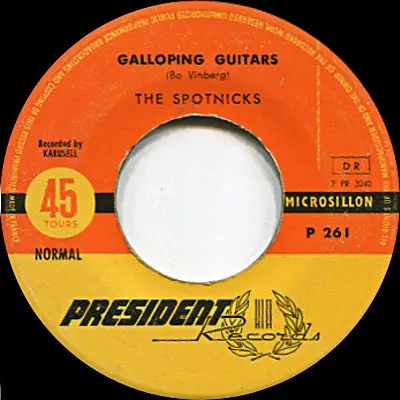 A. Orange Blossom Special/The Spotnicks Theme B. Galloping Guitars/The Rocket Man PRESIDENT PRC 306 FRANKRIKE 1962