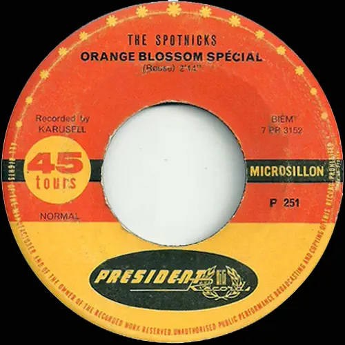 A. Orange Blossom Special B. Spotnicks Theme PRESIDENT P 251 FRANKRIKE 1962