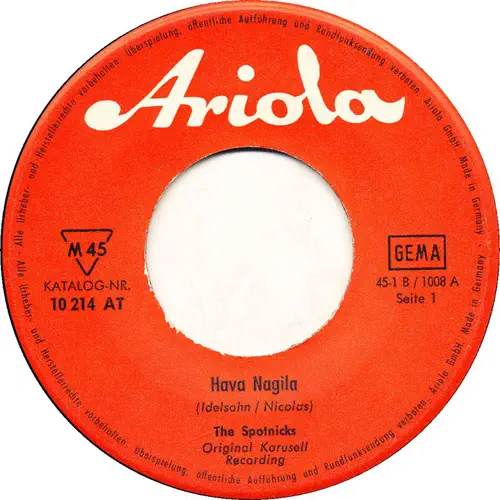 A. Havah Nagila/Amapola B. The Rocket Man/Spotnick Theme ARIOLA 40148 CT VÄSTTYSKLAND 1963