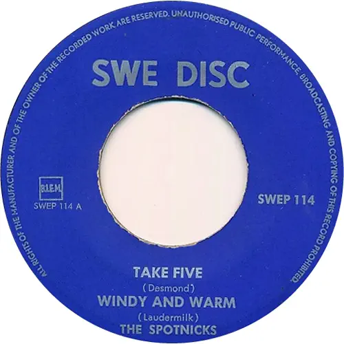 A. Take Five/Windy And Warm B. Bye Bye Blues SWE-DISC SWEP 114 NEDERLÄNDERNA 1963