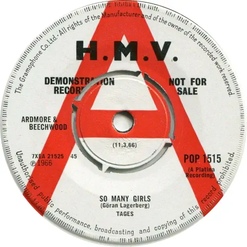 A. So Many Girls B. I'm Mad HMV POP 1515 PROMO ENGLAND 1966