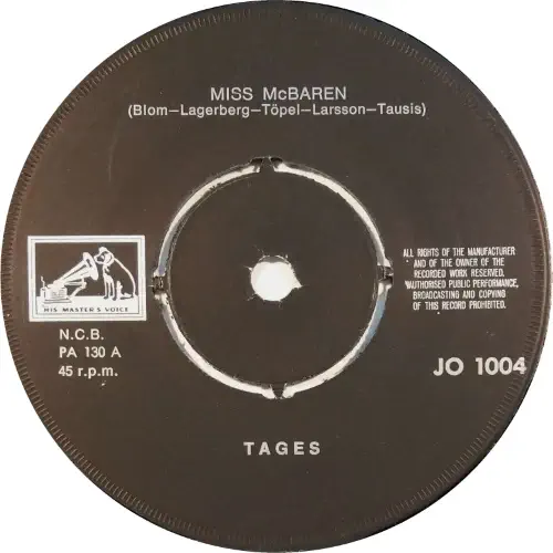 A. Miss McBaren B. Get Up An' Get Goin' HMV JO 1004 FINLAND 1966