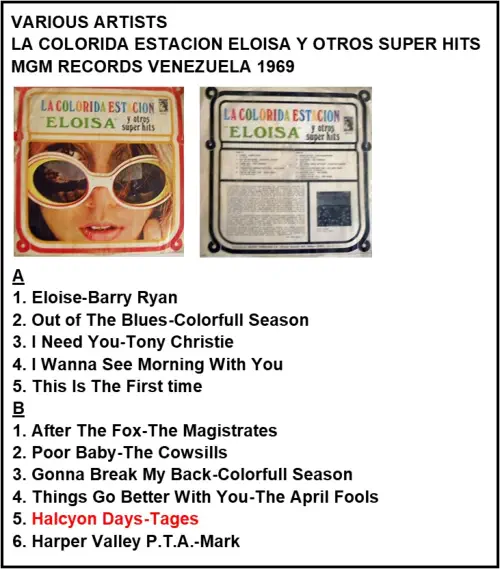 A. Halcyon Days B. I Read You Like An Open Book MGM 1443 ENGLAND 1968
