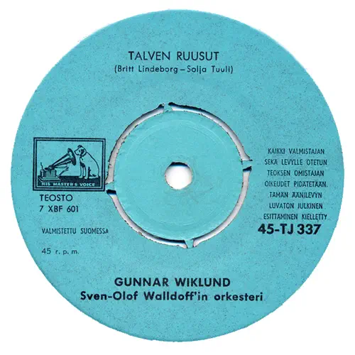 A. Talven Ruusut B. Sait Multa Kukkaset Toukokuun HMV 45-TJ 337 FINLAND 1966