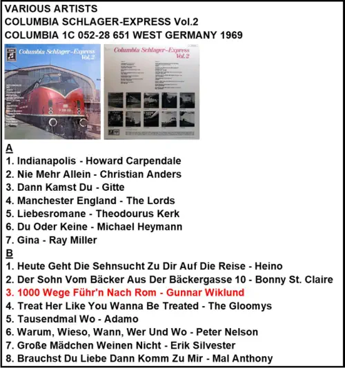 COLUMBIA SCHLAGER-EXPRESS VOL.2 COLUMBIA 1C 052-28 651 VÄSTTYSKLAND 1969